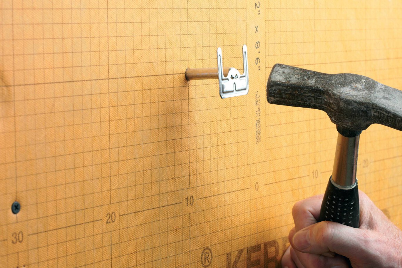 If the bond between the thin-set mortar and substrate is questionable, additional mechanical attachment with the KERDI-BOARD-ZSD anchors and corresponding screws is required. Fasteners are installed after the thin-set mortar has hardened.