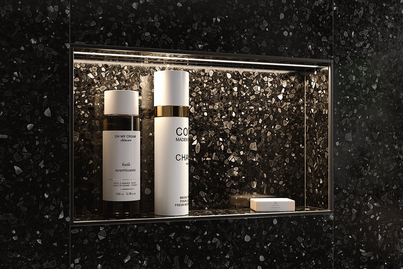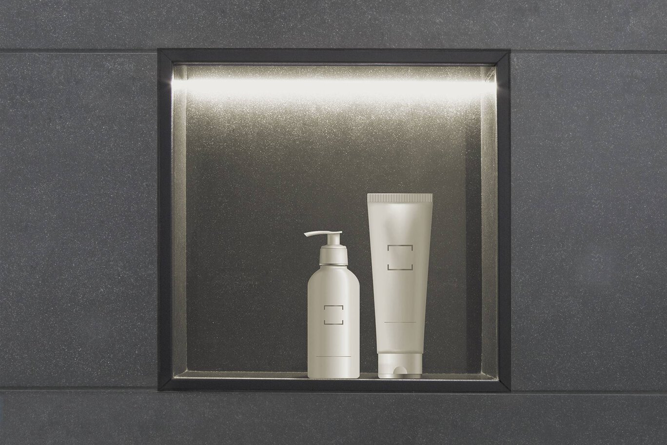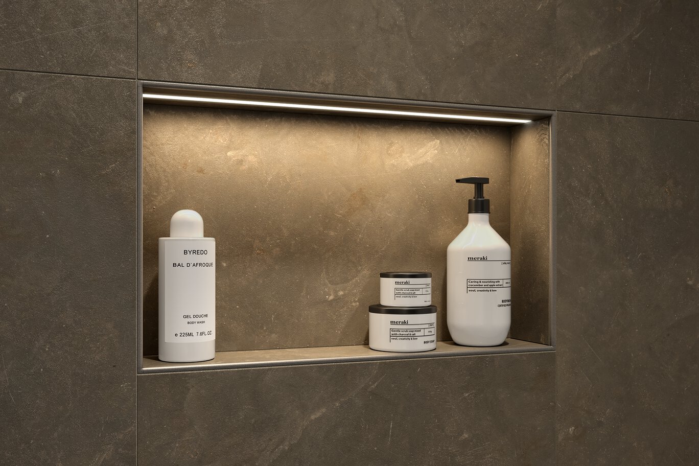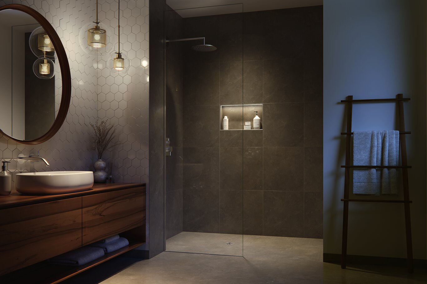 See your shower in a whole new light with Schluter®-KERDI-BOARD-SNLT with LIPROTEC Lighting!