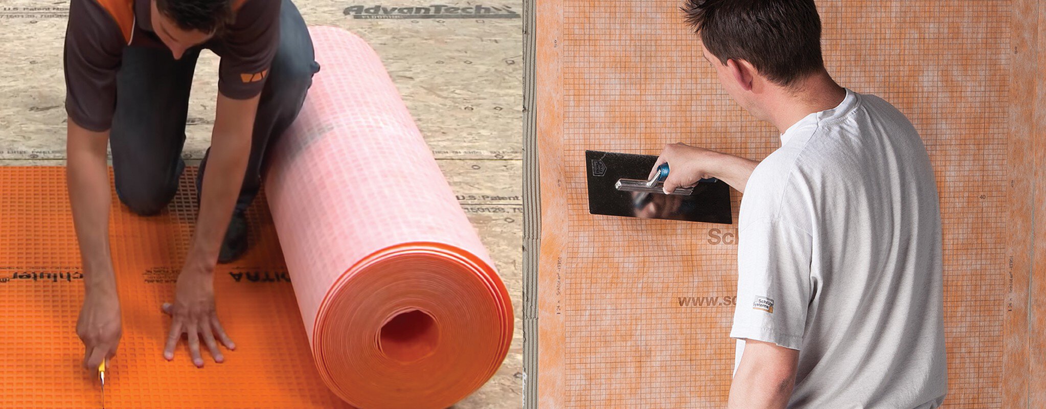 Schluter®-Systems offers solutions to common tile installation challenges, including effective waterproofing and uncoupling membranes. Ceramic and natural stone are esthetically pleasing, practical, and durable, but they are not completely waterproof or resistant to cracking or breakage. With this in mind, Schluter®-DITRA provides an innovative uncoupling technology that prevents the cracking of tile and grout while providing an effective waterproof seal. In addition, Schluter®-KERDI waterproofing and vapor barrier sheets can be installed underneath tile in showers, tub surrounds, and other wet areas.