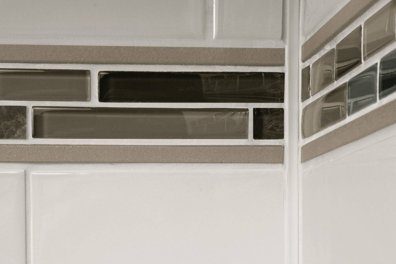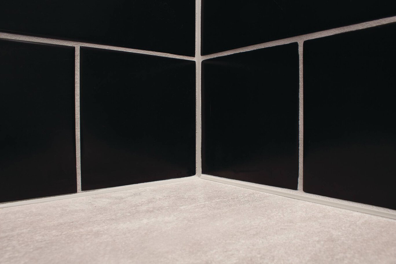 Schluter®-DILEX-EKE features trapezoid-perforated anchoring legs, made of recycled rigid PVC, which are secured in the mortar bond coat. The profile separates tile fields that meet at inside corners and accommodates movement via the 3/16" (5 mm)-wide soft chlorinated polyethylene (CPE) movement zone, which forms the visible surface and creates a discrete, uniform joint. DILEX-EKE prevents surface water penetration and features a tile pocket that hides cut tile edges. In addition, it prevents sound bridges, making it ideal for floor/wall transitions in sound-rated floors.
