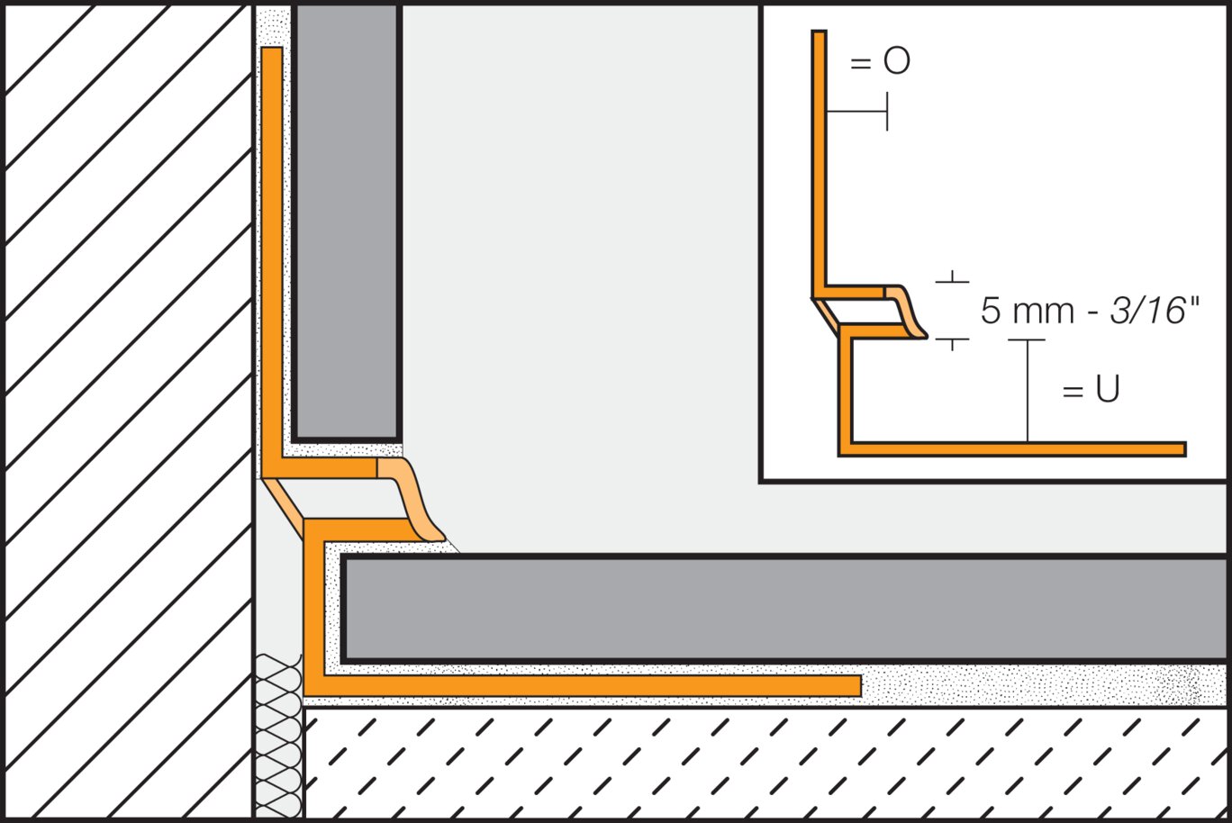 1. Select profile according to tile thickness and format, for DILEX-EKE “U”, must allow insertion of the tile into the tile pocket; for example, select “U 9” for a tile thickness of approx. 5/9" (9 mm).