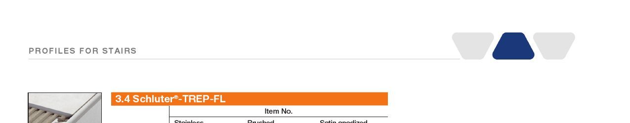 The Schluter®-TREP-EFK stair profile requires no special maintenance or care and is resistant to mold and fungi. Clean profile using common household cleaning agents.Stainless steel surfaces exposed to the environment or aggressive substances should be cleaned periodically using a mild household cleaner. Regular cleaning maintains the neat appearance of stainless steel and reduces the risk of corrosion. All cleaning agents must be free of hydrochloric and hydrofluoric acid and chlorides. Stainless steel surfaces develop a sheen when treated with a chrome-polishing agent.