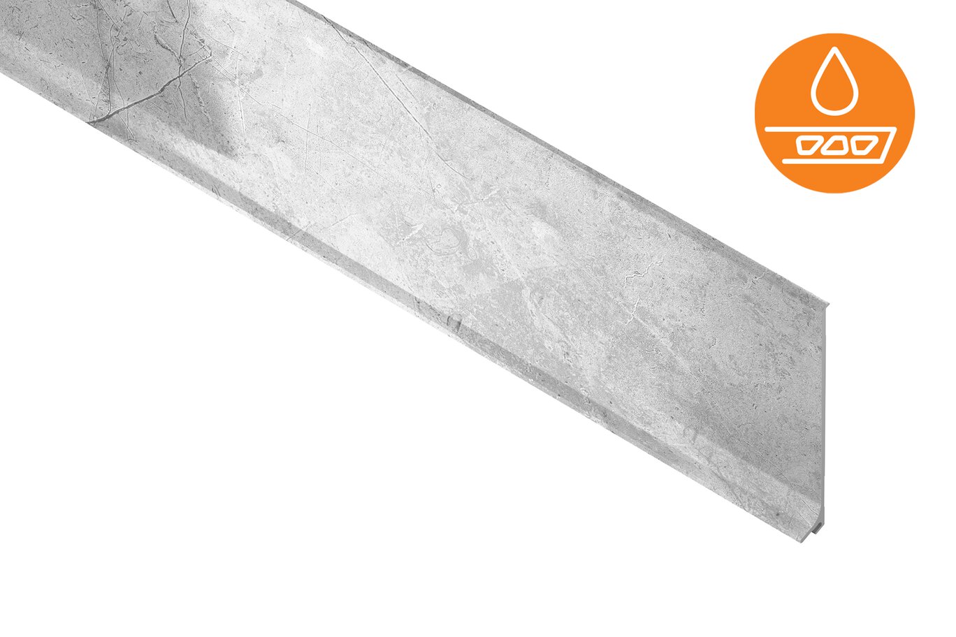 Schluter®-DESIGNBASE-SL is a finishing profile used as an alternative to baseboards. It features a clean, finished look and is simply attached to the wall area with a suitable adhesive. The profile can be equipped with an optional sealing lip to protect the floor-to-wall transition from moisture and to reduce the transmission of impact sound. The profile is available in anodized aluminum, color-coated aluminum, and brushed stainless steel.