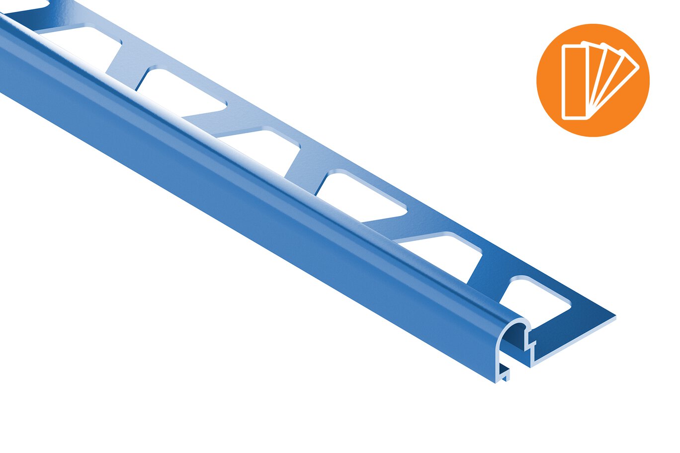 Schluter®-RONDEC-DB, an anodized aluminum, decorative profile for wall and skirting edges, protects the surface covering from mechanical or impact stresses. The profile features a trapezoid perforated anchoring leg that is secured in the mortar bond coat beneath the tile and a pronounced visible surface that establishes a clean line along tile edges and allows for decorative design.