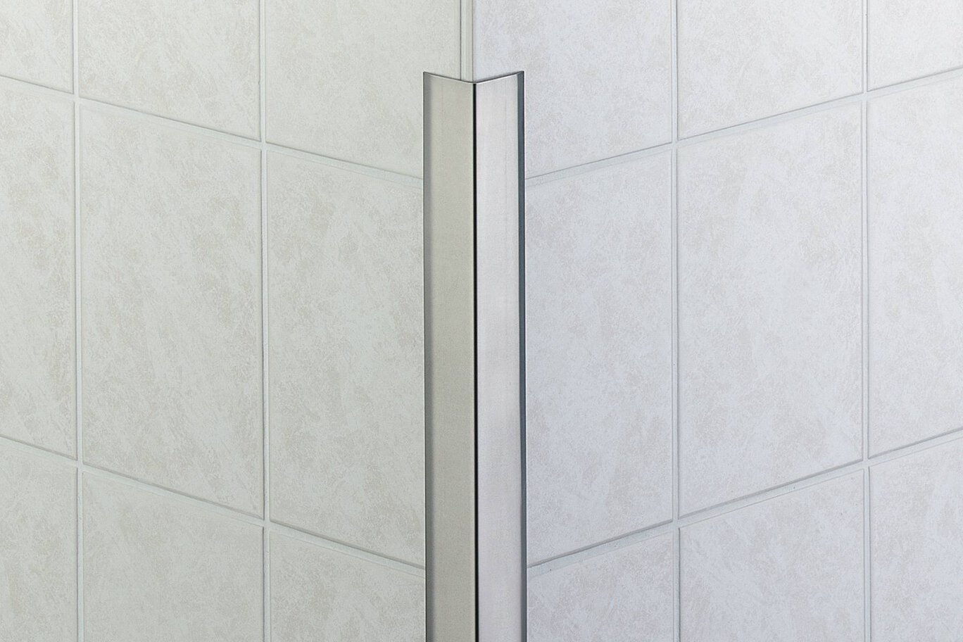 Schluter®-ECK-K is a stainless steel edging profile for 90° or 135° outside corners of tiled walls that offer excellent edge protection against mechanical stresses; for example, in industrial kitchens and hospitals. In addition, the profiles produce a radiused edge along the outside wall corner for a clean, decorative finish.