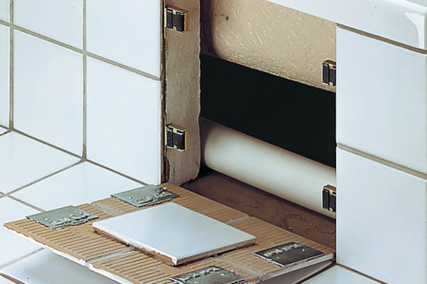 Schluter®-REMA is the ideal system for creating concealed access panels in tiled wall coverings. REMA’s installation is independent of tile size and thickness and enables exact matching of the access panel to the overall joint design. Thus, panels that access electrical or plumbing components do not impair the visual appearance of the tile covering.