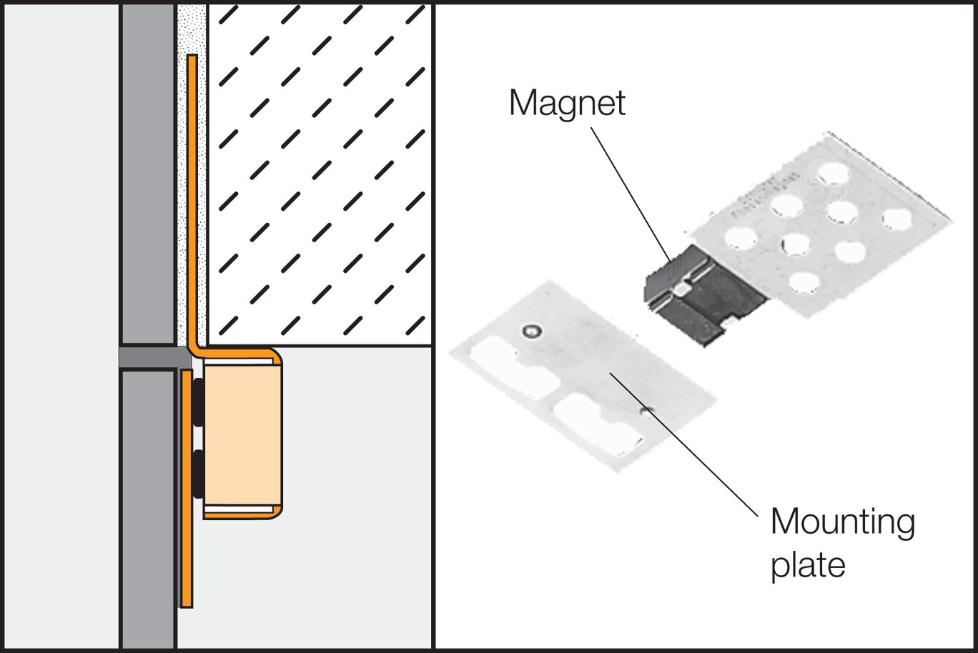 Note: If the access opening is substantially larger than 12" x 12" (30 x 30 cm), it may be necessary to install two additional magnets.