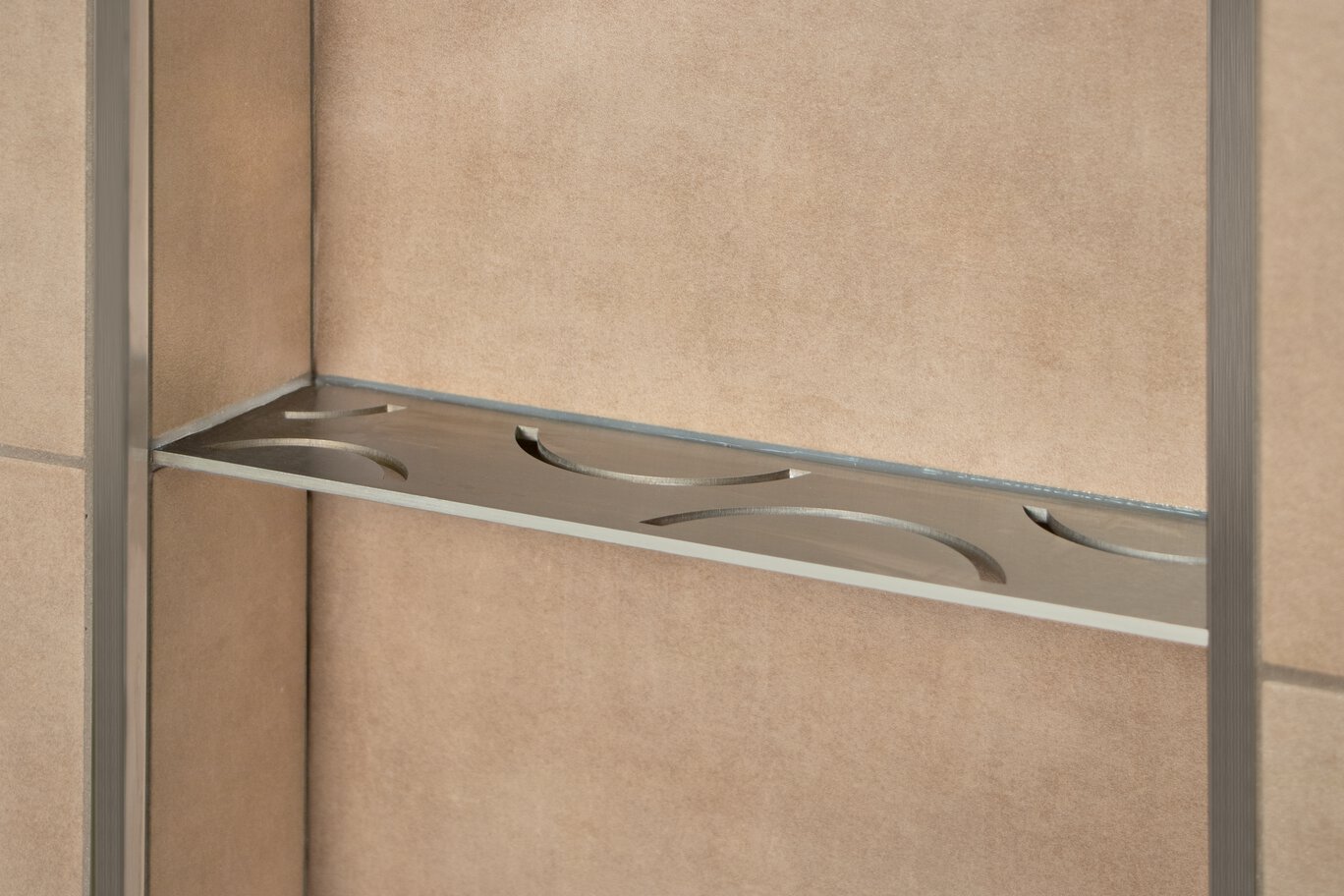 Schluter®-SHELF-N requires no special maintenance or care and is resistant to mold and fungi. Clean shelves periodically using neutral cleaning agents. Avoid the use of strong acids (e.g., hydrochloric, hydrofluoric) and bases/alkaline cleaners (e.g., bleach, ammonia, chlorides). Do not use abrasive cleaning agents and tools. Even stainless steel requires periodic cleaning, which will maintain a neat appearance and reduce the risk of corrosion. Stainless steel surfaces develop a sheen when treated with a chrome-polishing agent.