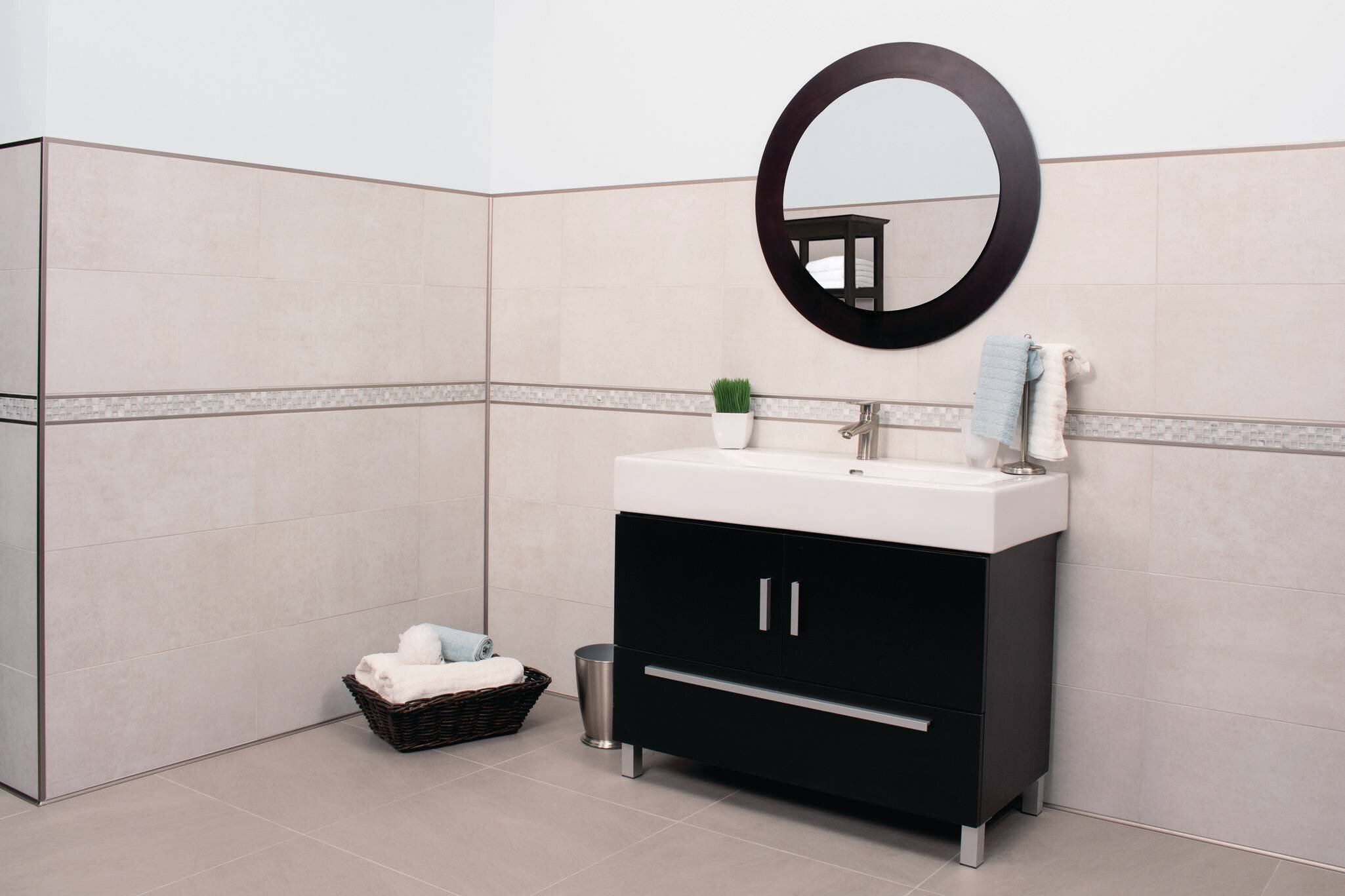 QUADEC features a crisp, squared edge for finishing exposed tile edges and outside corners.