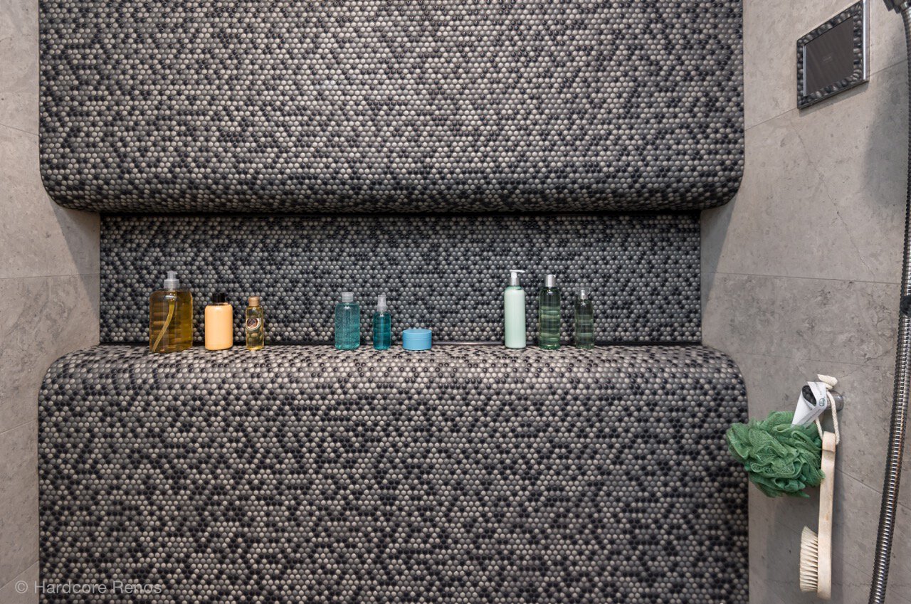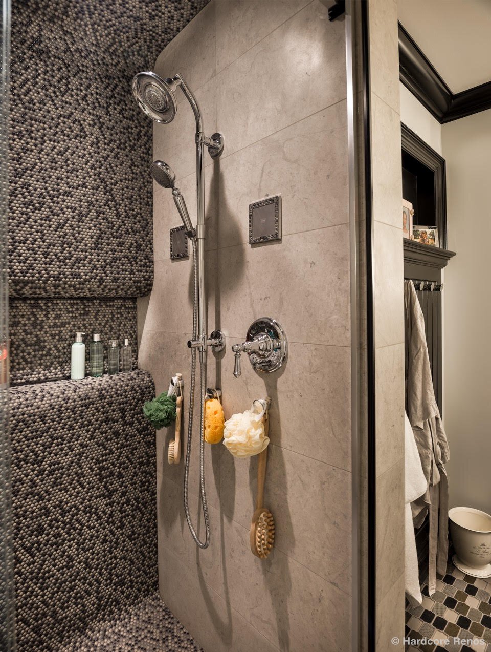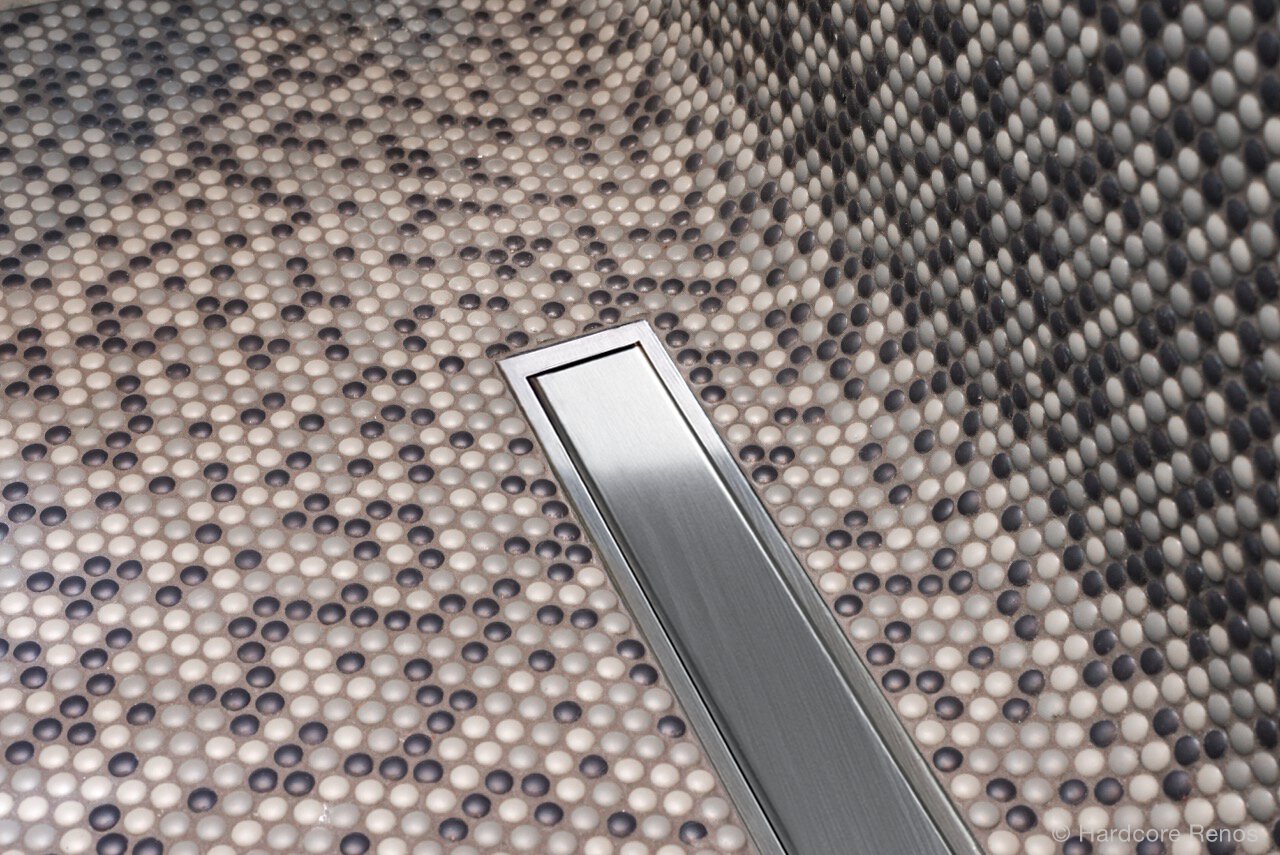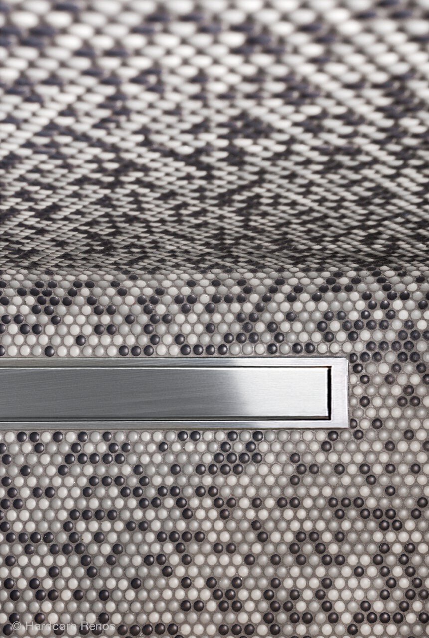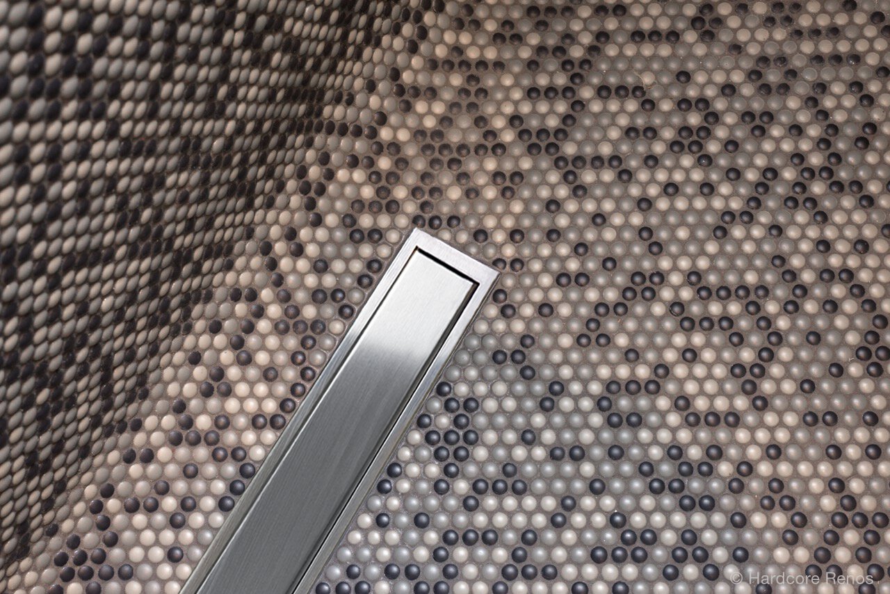 The KERDI-LINE linear drain further enhances the elegance of this beautifully tiled shower.