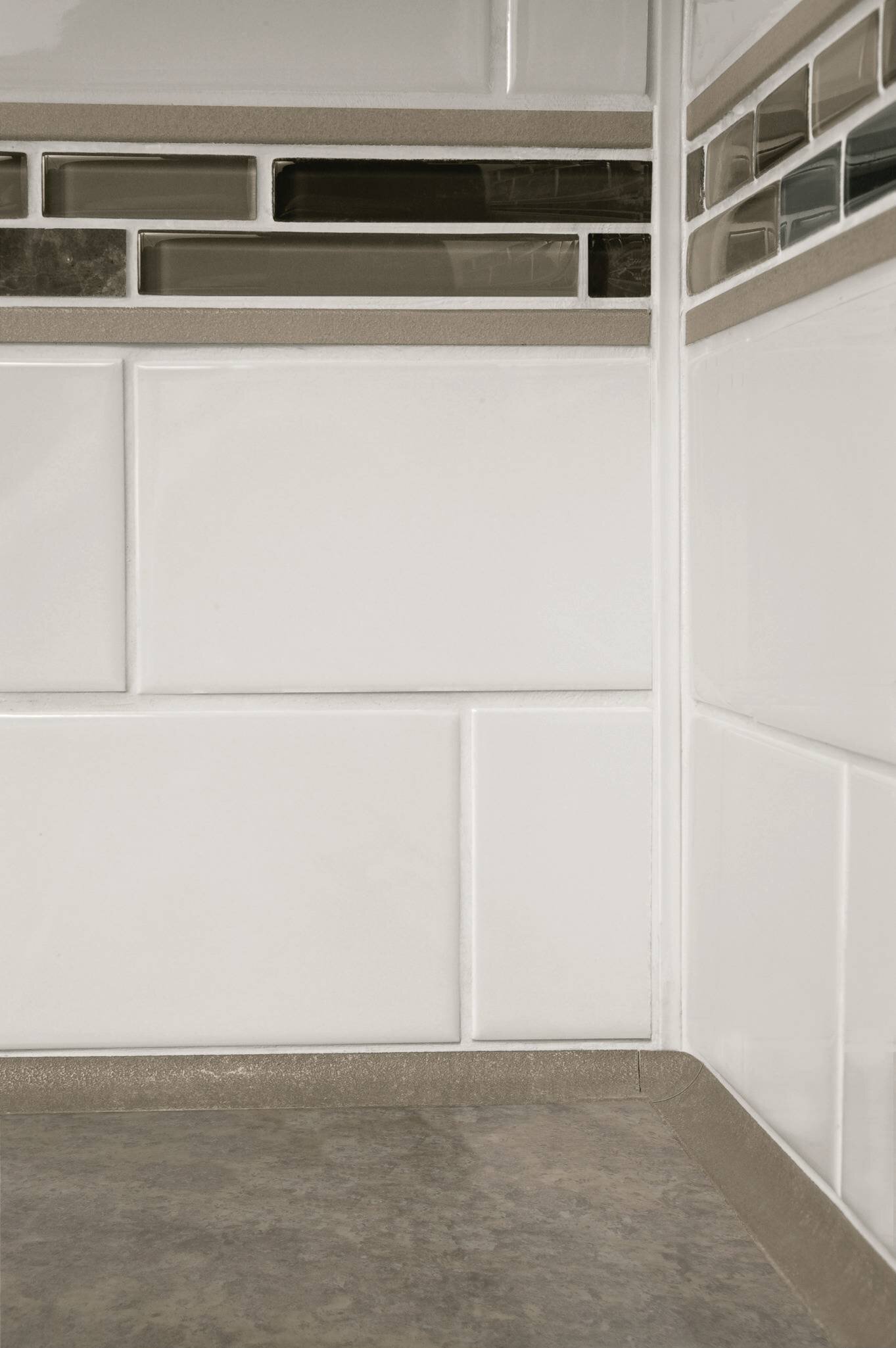 DILEX-AHK cove-shaped profile used to create a smooth transition between the countertop and backsplash. DILEX-EKE PVC corner movement joint profile inserted in the backsplash corners to create a seamless transition.