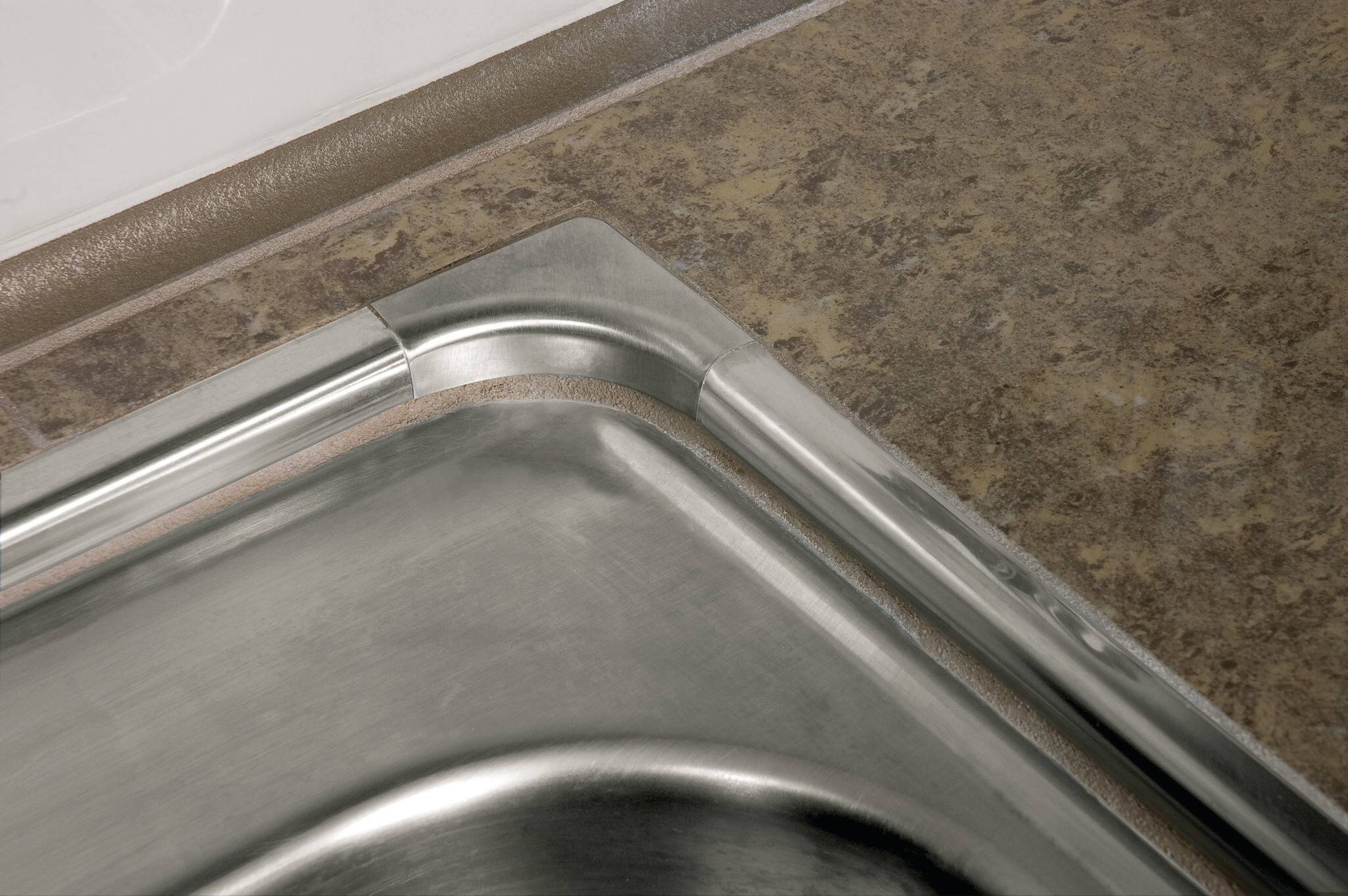 RONDEC-CT double-rail edging profile and matching corners applied to the sink rail.