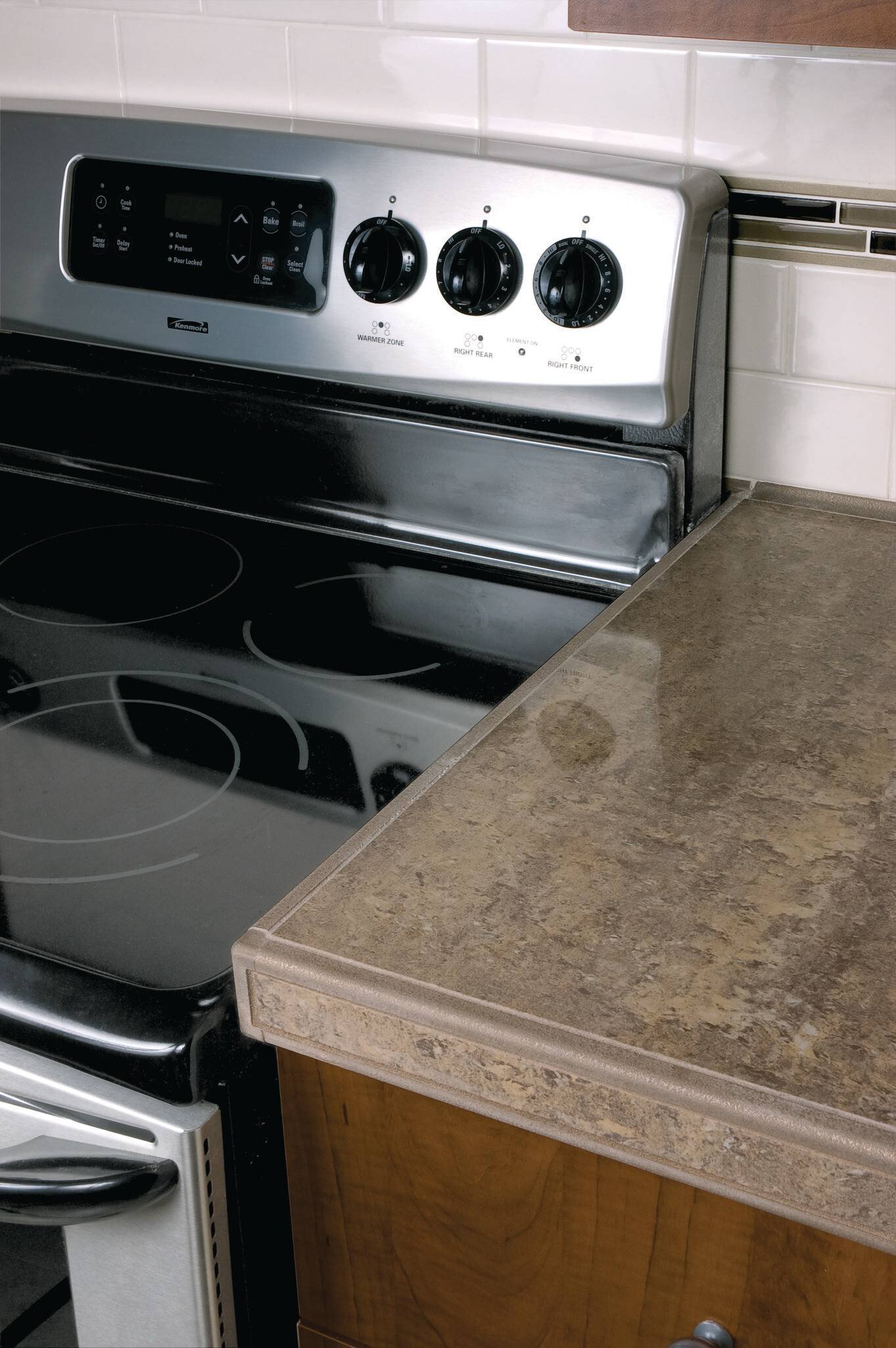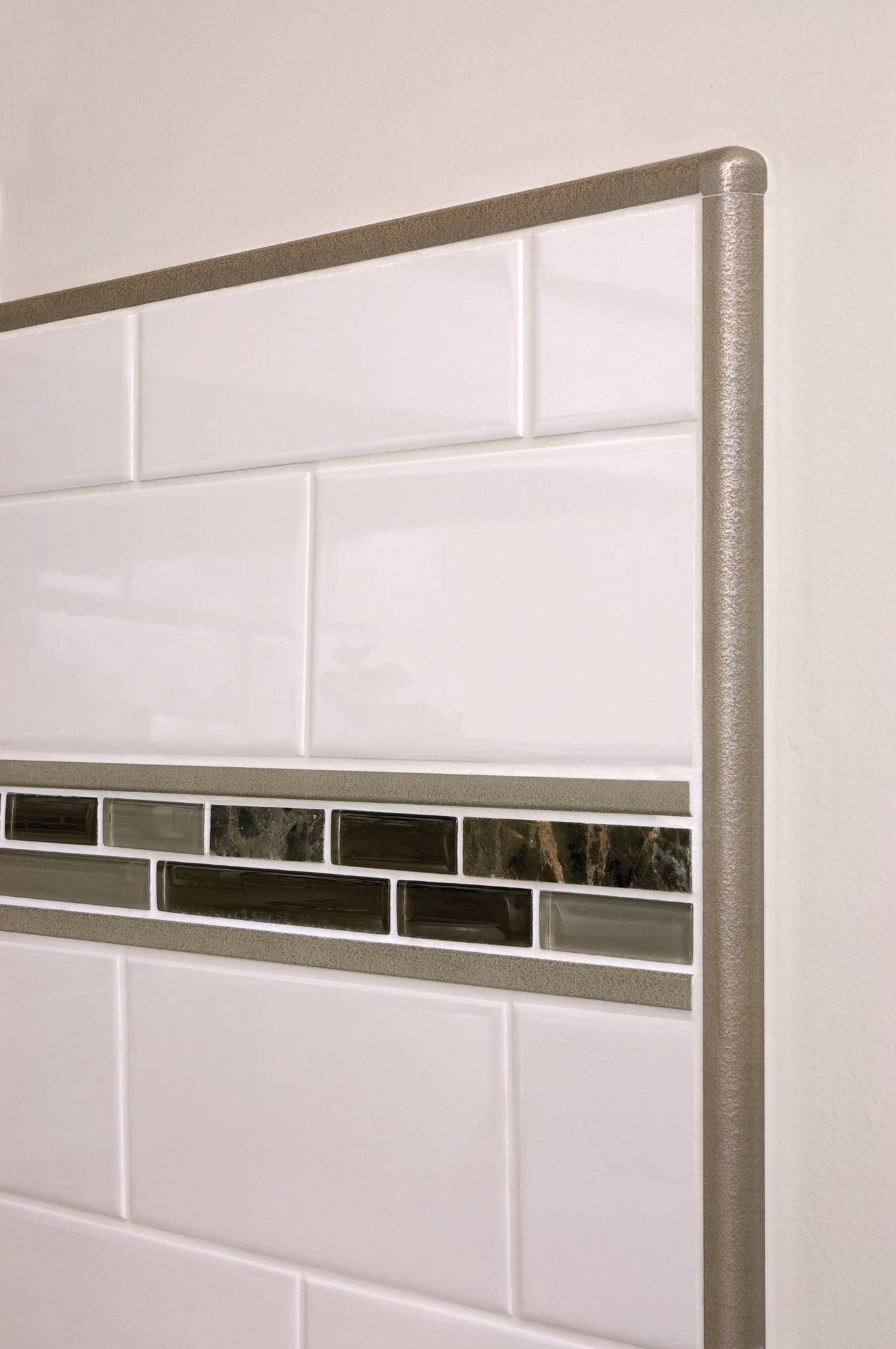 RONDEC bullnose profile used to finish the tile edges of the backsplash.
