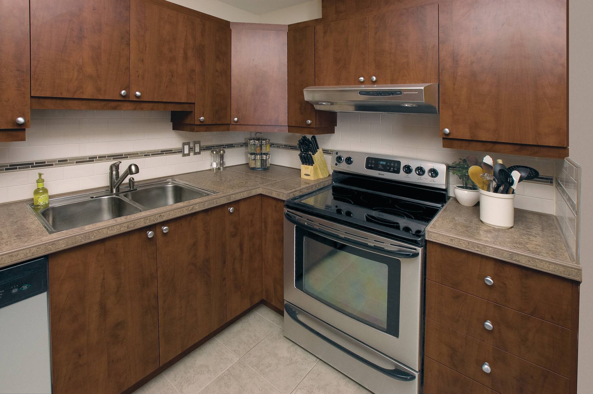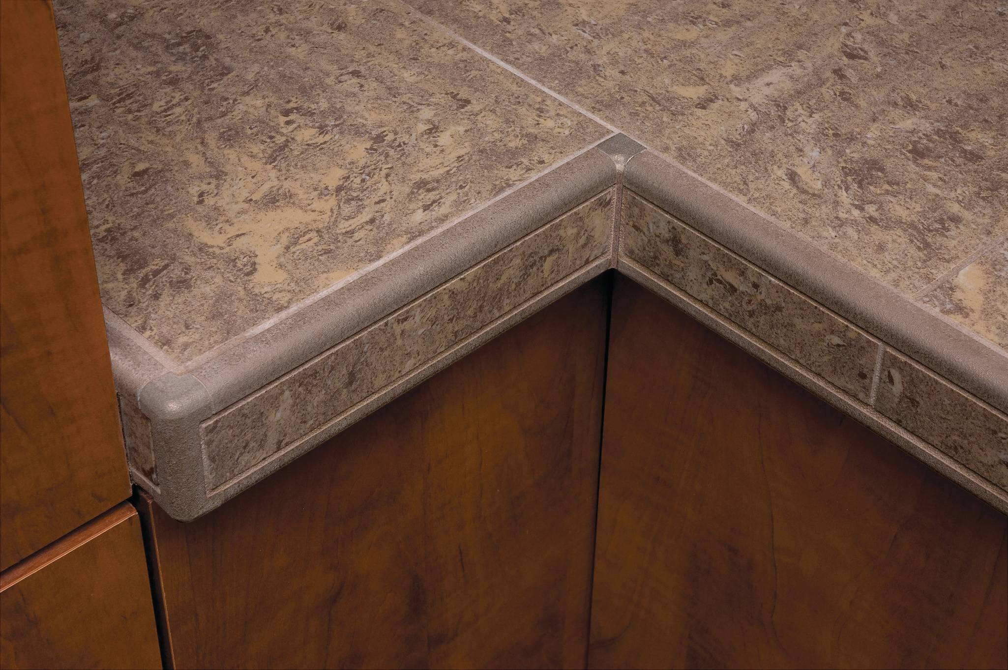 RONDEC bullnose profile and sink corners used to produce the tiled-under sink. DILEX-AHK cove-shaped profile used to create a smooth transition between the countertop and backsplash.