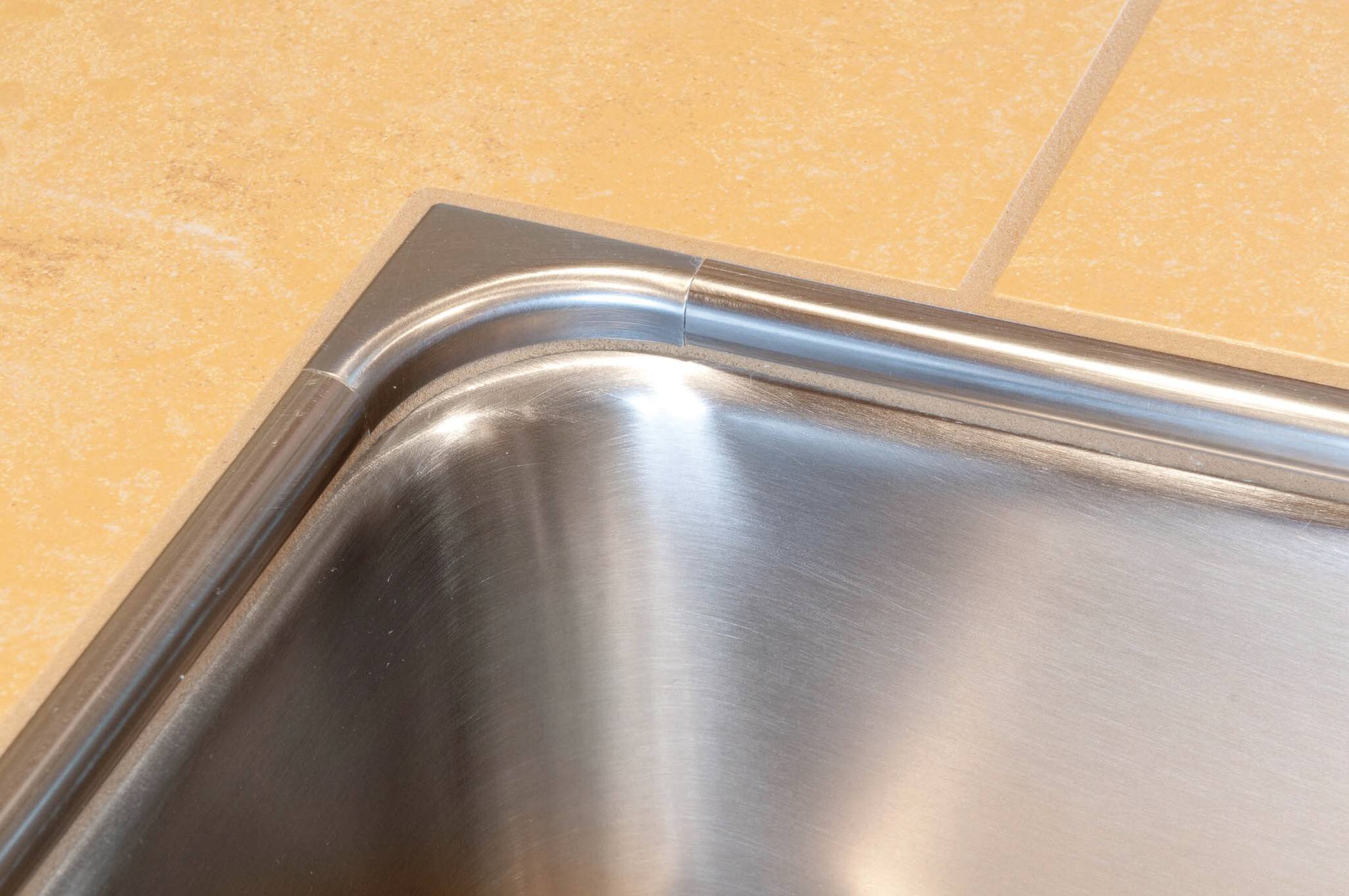 RONDEC bullnose profile and sink corners used to produce the tiled-under sink.