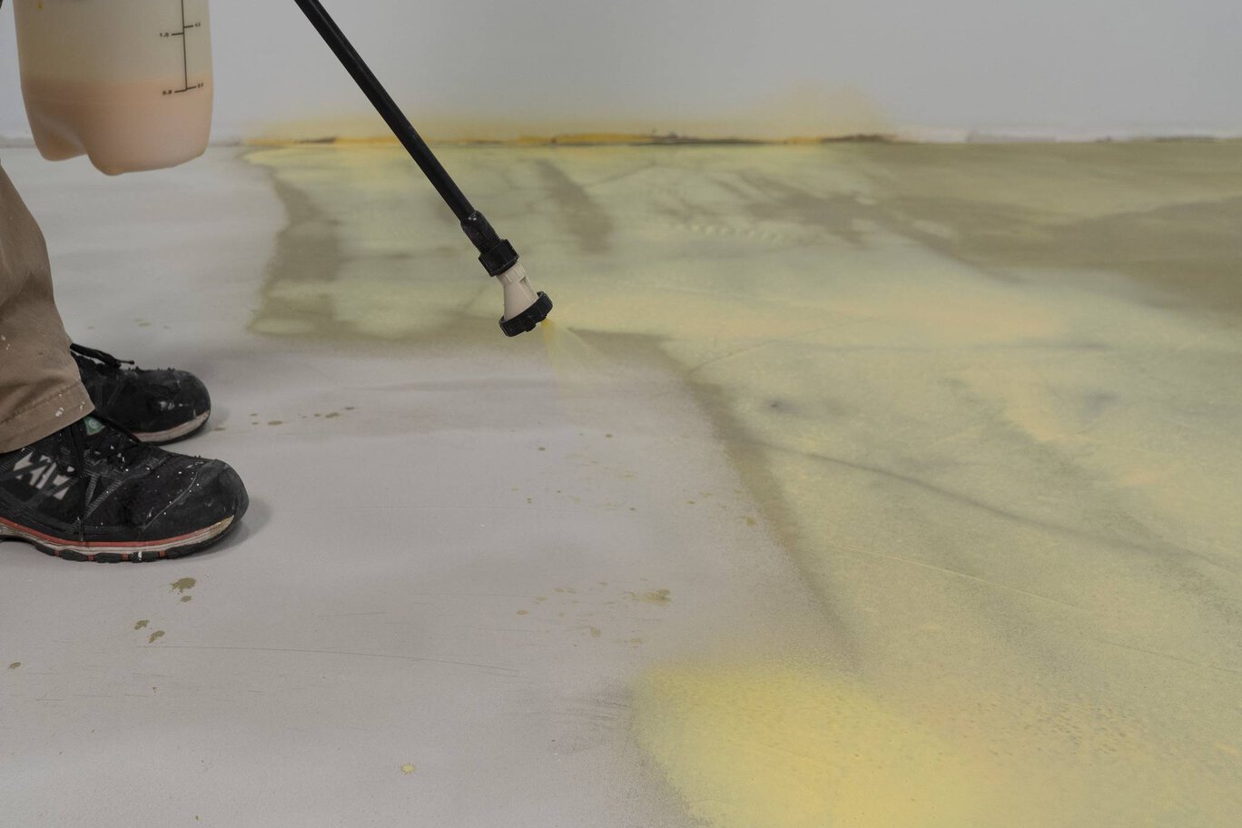 Preparación de la superficie: la superficie donde se va a aplicar PRIMER-U debe ser estructuralmente sólida, estar limpia, lisa, seca y libre de humedad. Debe eliminarse cualquier contaminante (es decir, pintura, grasa, aceite, selladores, compuestos de fraguado, etc.) y/o adhesivo para pisos que no esté bien adherido o que pueda impedir una unión adecuada. Limpie a fondo la superficie para eliminar la suciedad y los restos.