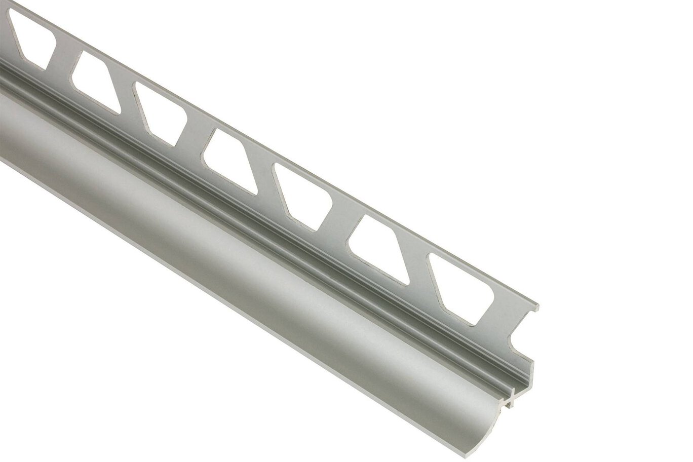 Schluter DILEX-AHKA es un perfil de mediacaña de aluminio anodizado para transiciones entre paredes que se revestirán con baldosas y pisos previamente terminados. El perfil dispone de un ala de fijación simple perforada en forma trapezoidal que se fija en la capa de mortero adhesivo y un canal ranurado que puede pegarse a la superficie del piso con KERDI-FIX, resina epóxica, silicona, mortero de capa fina, etc. Una sección con forma de mediacaña con un radio de 3/8" (10 mm) forma la superficie visible y previene la acumulación de suciedad, facilitando la limpieza. DILEX-AHKA previene la entrada de agua y cumple con los requisitos de mantenimiento e higiene de cocinas comerciales, baños, plantas de procesamiento de alimentos y cualquier otra superficie revestida de baldosas donde se necesite un perfil de mediacaña para fines sanitarios. DILEX-AHKA se integra con los perfiles DILEX-AHK y RONDEC en las esquinas verticales interiores y exteriores de 90° de la pared, respectivamente. Para DILEX- AHKA hay disponibles esquinas interiores y exteriores de 90° y 135°, conectores y tapones terminales.