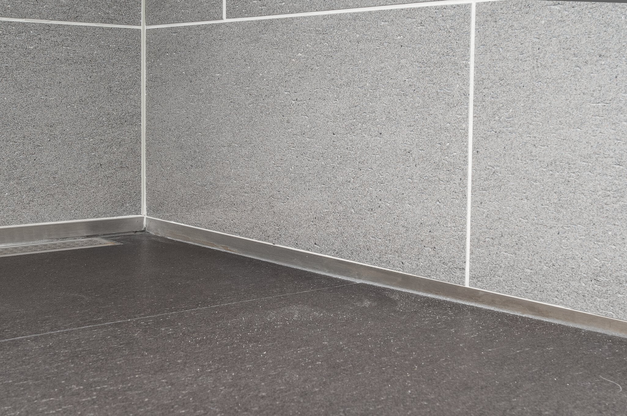 El perfil del sistema SHOWERPROFILE-S elimina la necesidad de cortar las baldosas de la pared para que coincidan con la pendiente de la base de la ducha, y permite una fácil instalación de la primera hilera de baldosas a lo largo del borde superior del perfil.