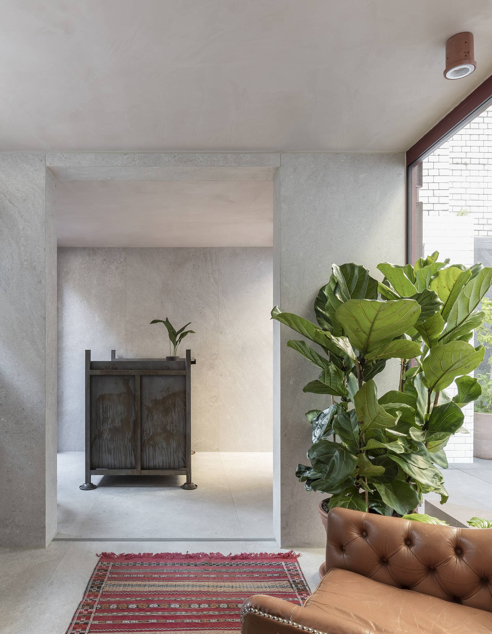 Con baldosas de gran formato de moda en grises clásicos y tonos neutros, esta sofisticada galería se sostiene con BEKOTEC, un sistema liviano de recrecido modular.
