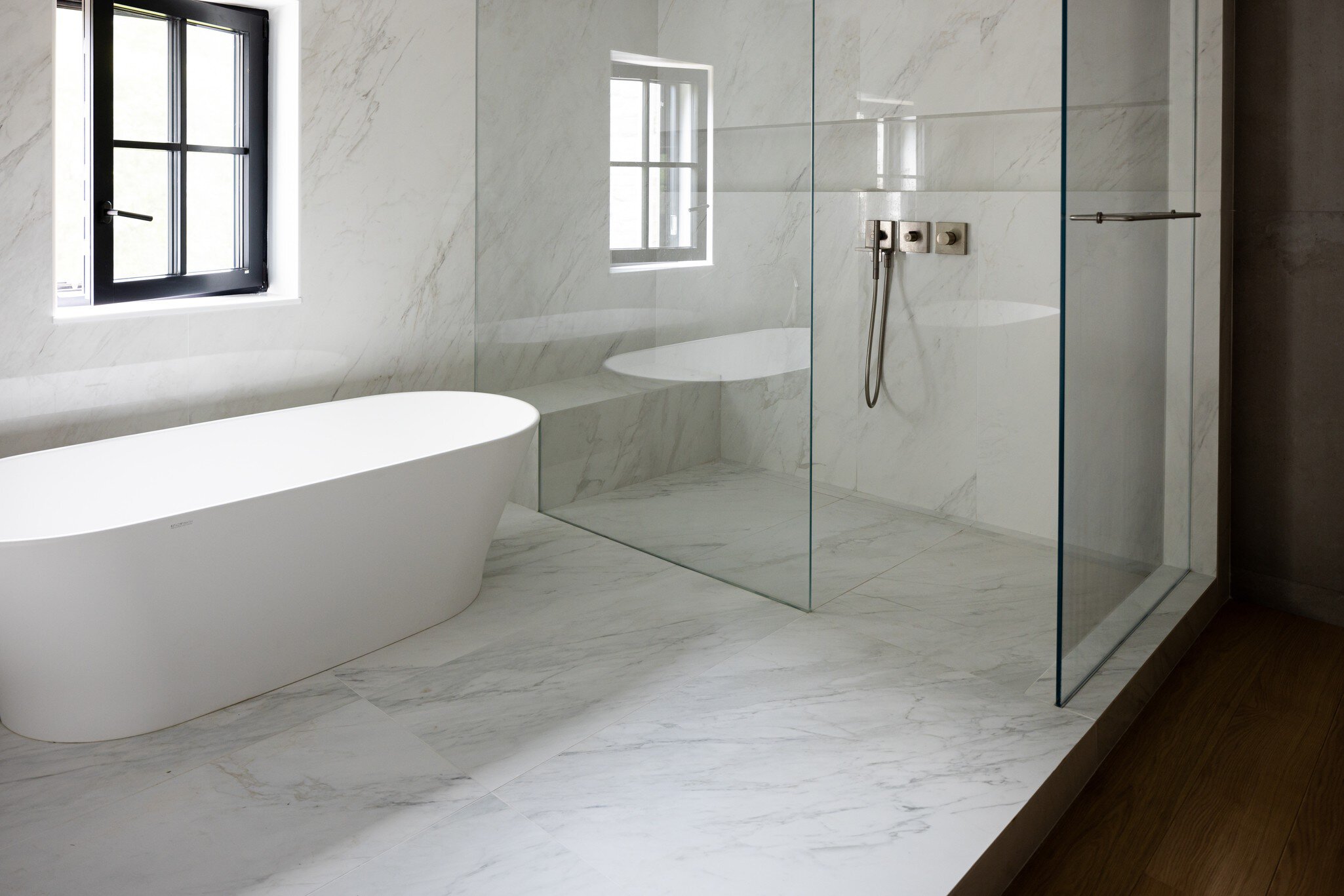 DITRA-HEAT se extiende hasta la ducha para brindar un lujo incomparable.
