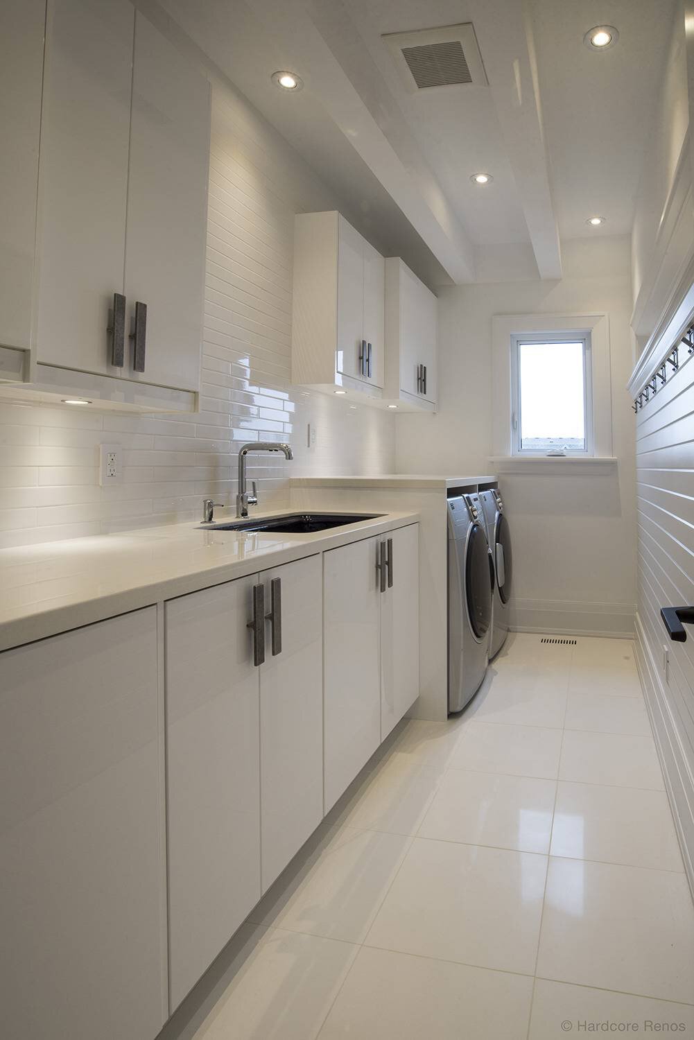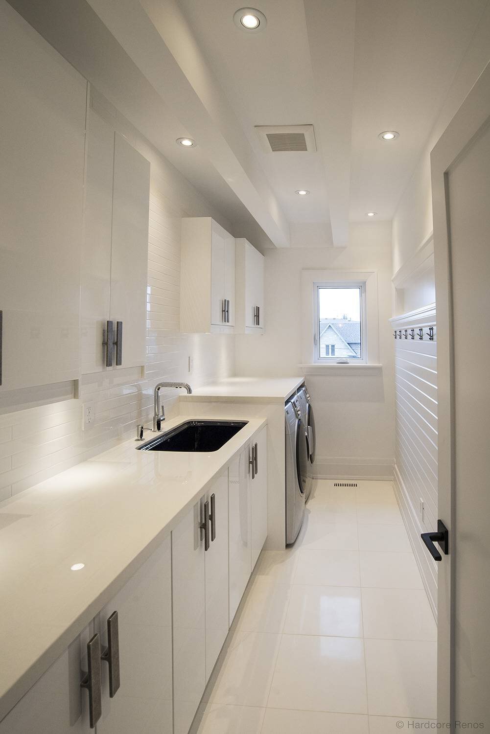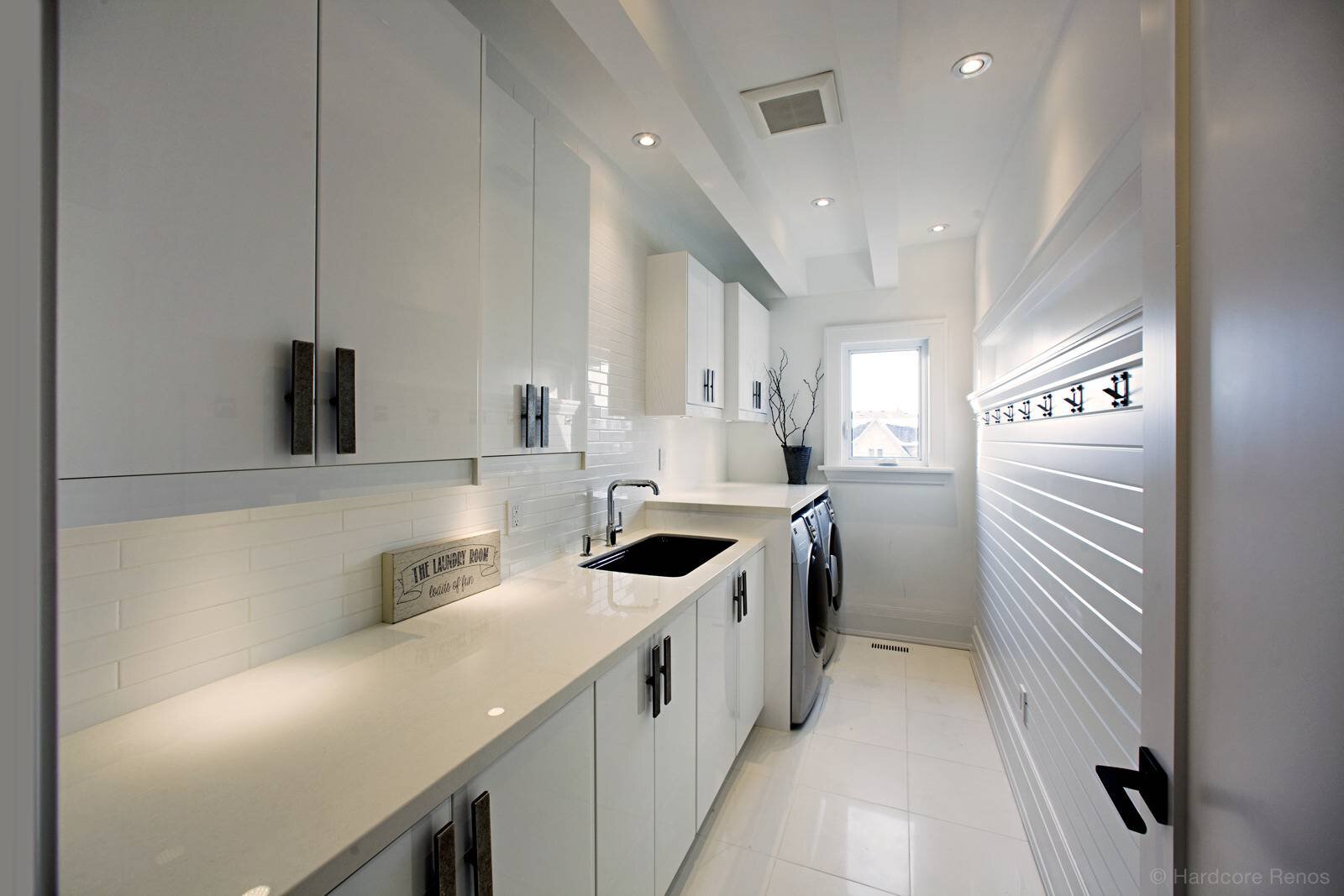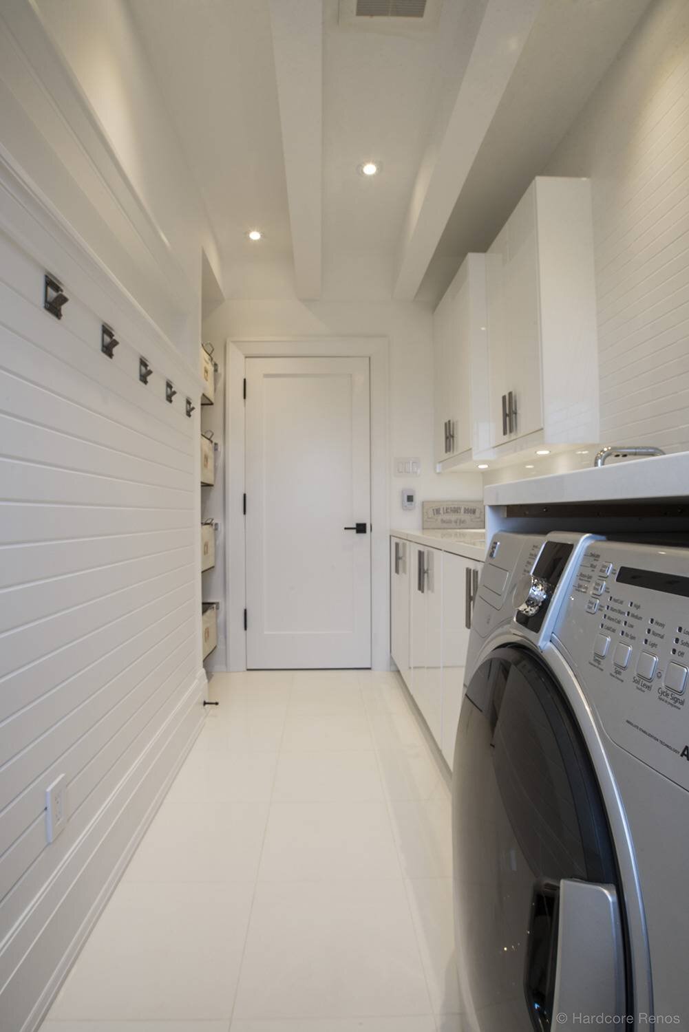 Esta sala de lavado de diseño depurado luce la calidez y el confort de DITRA-HEAT bajo los pies.
